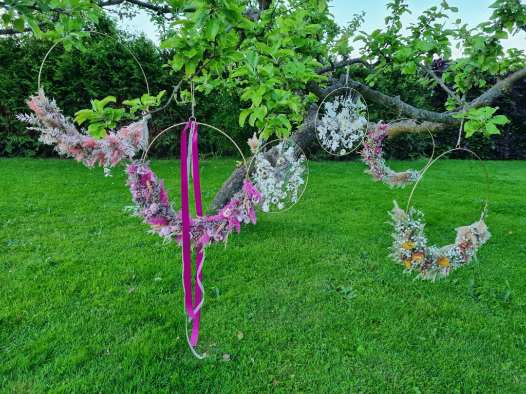 Loops, florale Traumfänger, Kränze im Bohostyle und viele andere dauerhaft haltbare Arrangements fertige ich auf Wunsch in vielen Farbkombinationen.