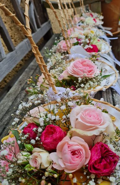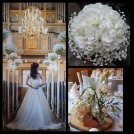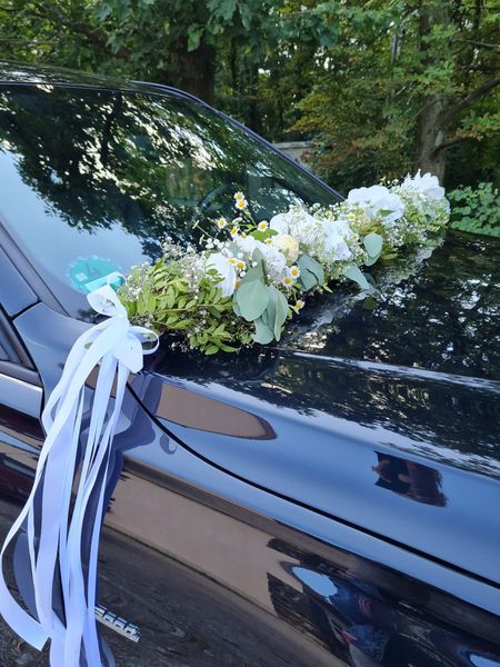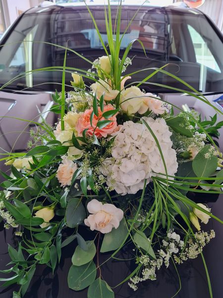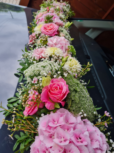 Gern gestalte ich Ihnen passend zum Brautstrauß: weiteren Brautschmuck, Anstecker für Bräutigam, Sträuße für Brautjungfern oder Kränze für die Köpfe der Blumenkinder, Autoschmuck, Tisch- und Blumendekoration auch für Kirche und Altar.